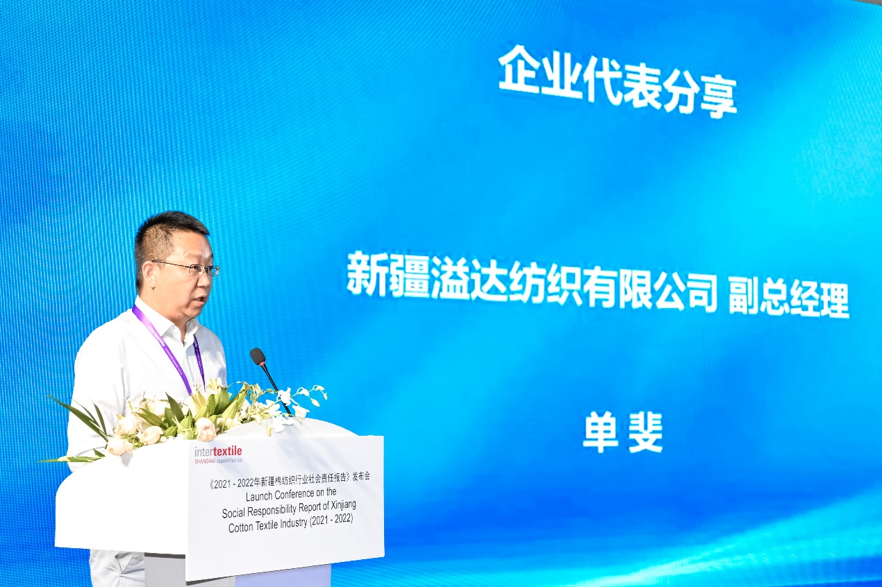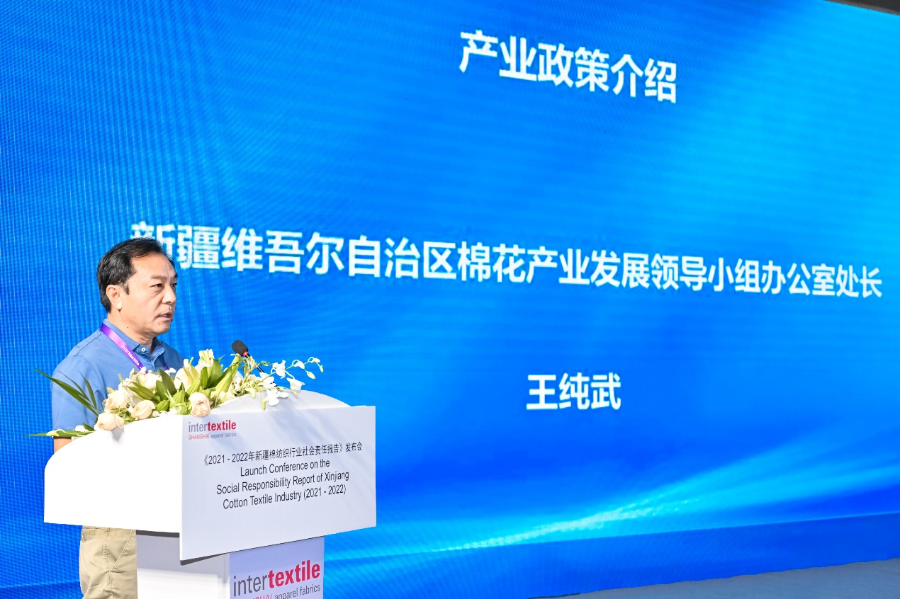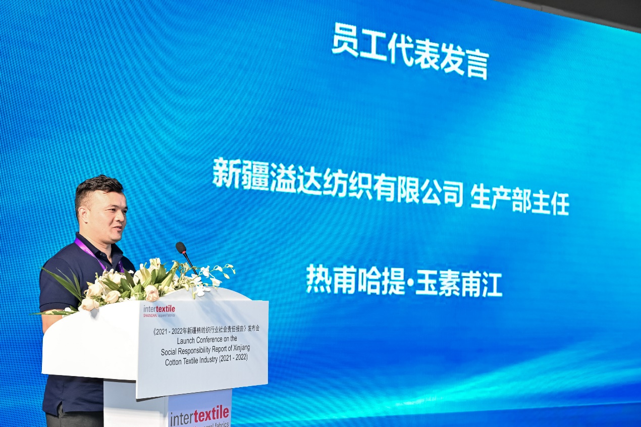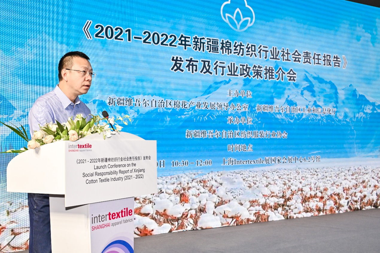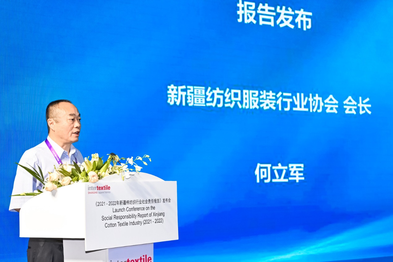 为向全世界的服装品牌、消费者、非政府组织等各利益相关方,展现新疆棉纺织行业真实、立体、全面的行业面貌和可持续发展实践,新疆纺织服装行业协会会长何立军现场发布了《2021-2022年新疆棉纺织行业社会责任报告》。该报告以国际化视角讲好“新疆棉纺织行业故事”为主线,从“行业发展现状、筑牢民生保障、促进共同繁荣、护佑绿水青山、彰显全球价值、行业发展前景与展望”六个章节,梳理了新疆棉纺织行业的发展成果、企业运营的责任绩效、行业长期发展战略以及不断优化提升的履责实践等,对增进国际社会对新疆棉纺织行业的了解与信任,深化国际供应链合作共赢提供了重要支撑。