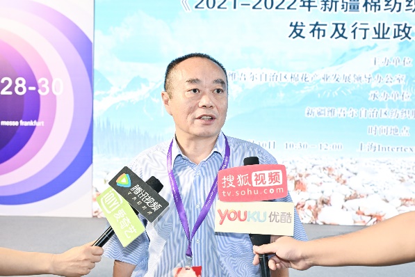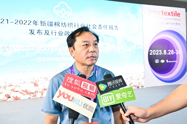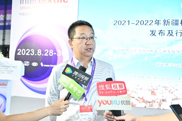 活动最后,为进一步了解新疆纺织服装行业的发展成果和未来发展规划,现场记者还对新疆维吾尔自治区棉花产业发展领导小组办公室处长王纯武、新疆纺织服装行业协会会长何立军、新疆溢达纺织有限公司副总经理单斐、新疆华孚纺织有限公司工会主席熊旭锋进行了专访。