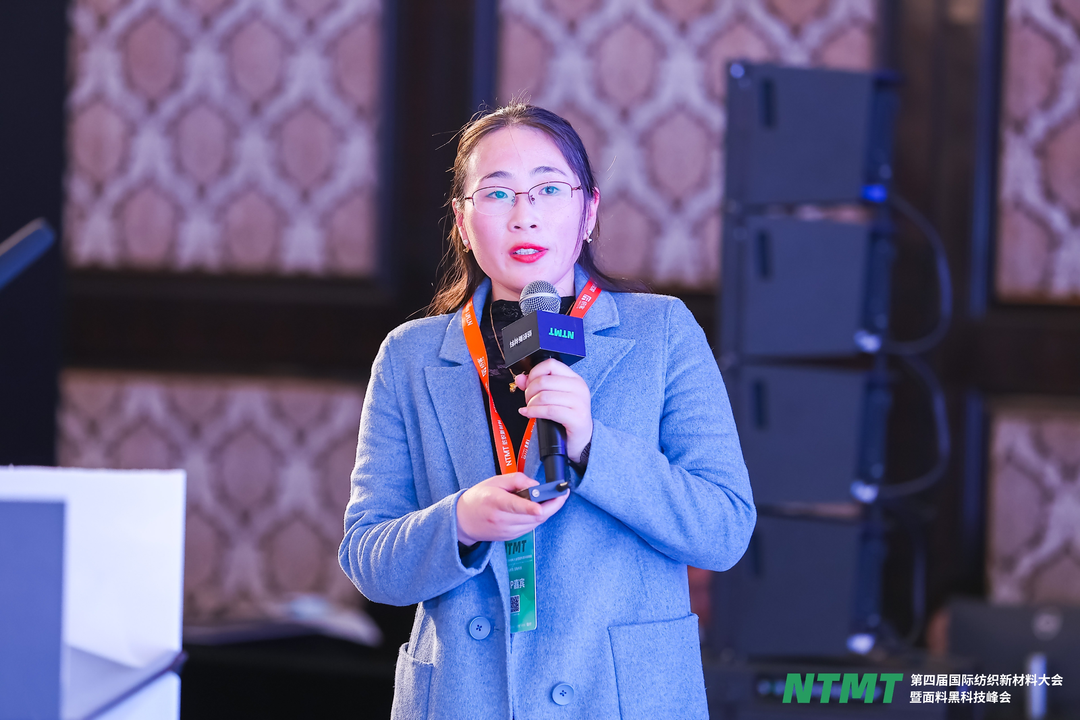 华中科技大学陶光明教授博士后杨麦萍在【纤维新材料驱动的绿色低碳和智能健康的新生活模式】的主旨演讲中,重点介绍了无源降温新材料技术与智能感知纤维技术,指出,纤维新材料的功能性开发与智能升级,不仅可以应用于纺织服装,为人体带来舒适、安全、感知交互等穿着体验的升级,更能延伸向建筑、交通、医疗、市政行业等领域,为医疗、智能检测、节能环保、等需求带来颠覆性解决方案。