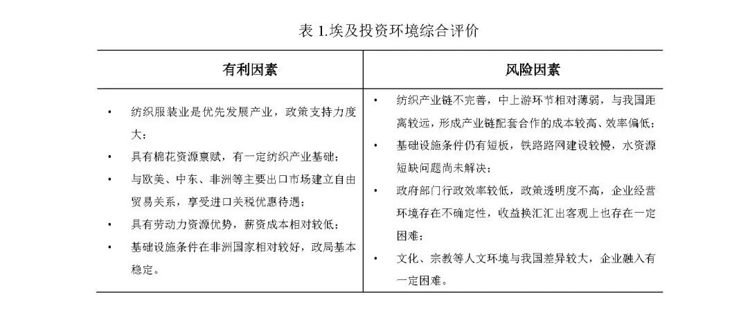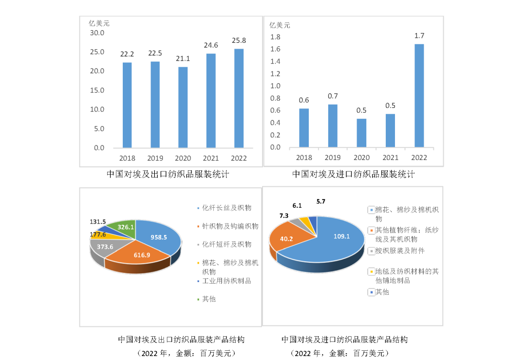 埃及政府自2017年以来健全法律体系,出台、修订了一系列关于改善投资环境的政策,并兴建多个投资园区用以提高投资承载力。此外,埃及政府于2020年出台 “纺织业发展愿景 2025”计划,不遗余力扶植和推动纺织工业机械化发展,通过将纺织行业出口补贴由原来的9%提升到12%等优惠政策吸引外资,促进纺织业发展。