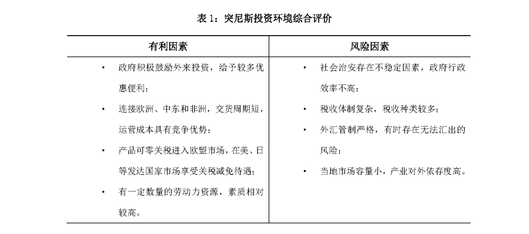 (1)突尼斯地理位置优越,接近欧洲市场,并享受进入欧洲市场的优惠贸易政策安排,有百余个国际知名品牌在突尼斯建立加工厂或代工。