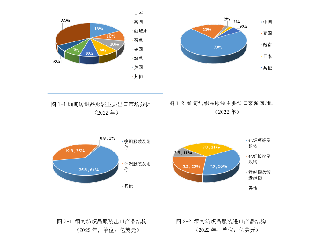 (5)我国纺织企业可结合实际,在缅甸投资发展服装加工环节,并向上游适当延伸产业链。同时,考虑到较为临近的孟加拉国、柬埔寨等服装生产大国同样是以来料加工为主的出口模式,可根据缅甸及周边国家产业合作情况,投建纺纱、织造及印染厂,合理布局,促进产业链上下游融通发展。